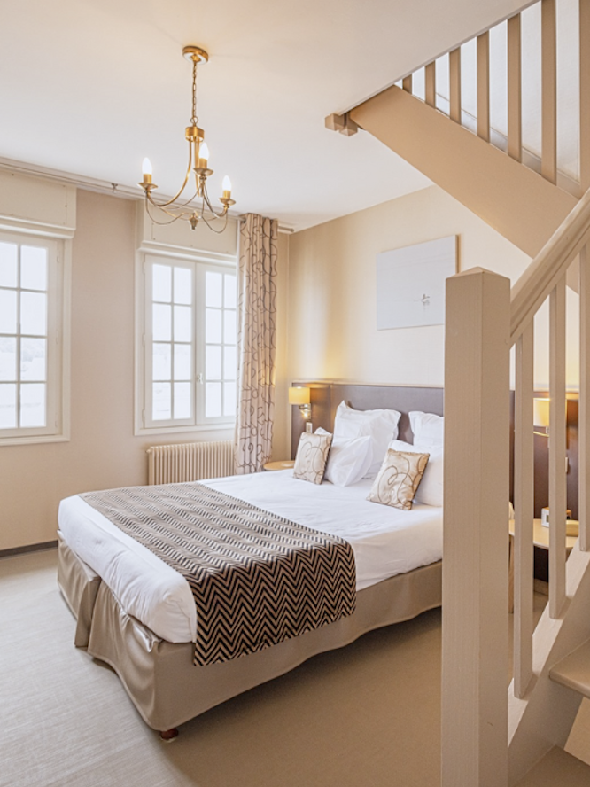 For an unforgettable experience by the water, discover the Prestige duplex rooms. Upstairs, a light-filled panoramic lounge offers exceptional views of the port of Audierne, a veritable living painting to be admired at any time of day. Downstairs, the bedroom, with its simple and elegant décor, creates a soothing atmosphere. A haven of calm and light for the whole family, facing the ocean.
