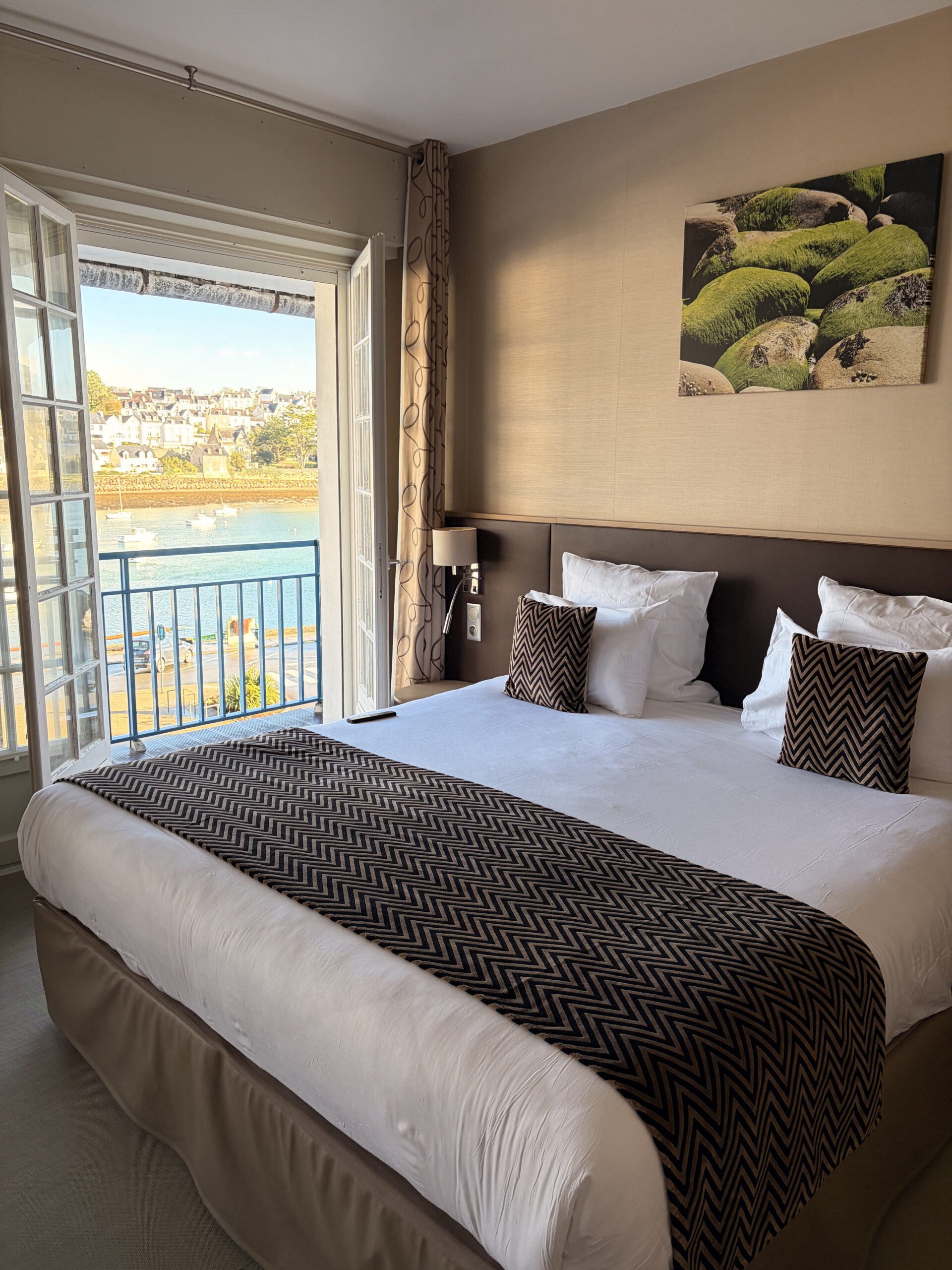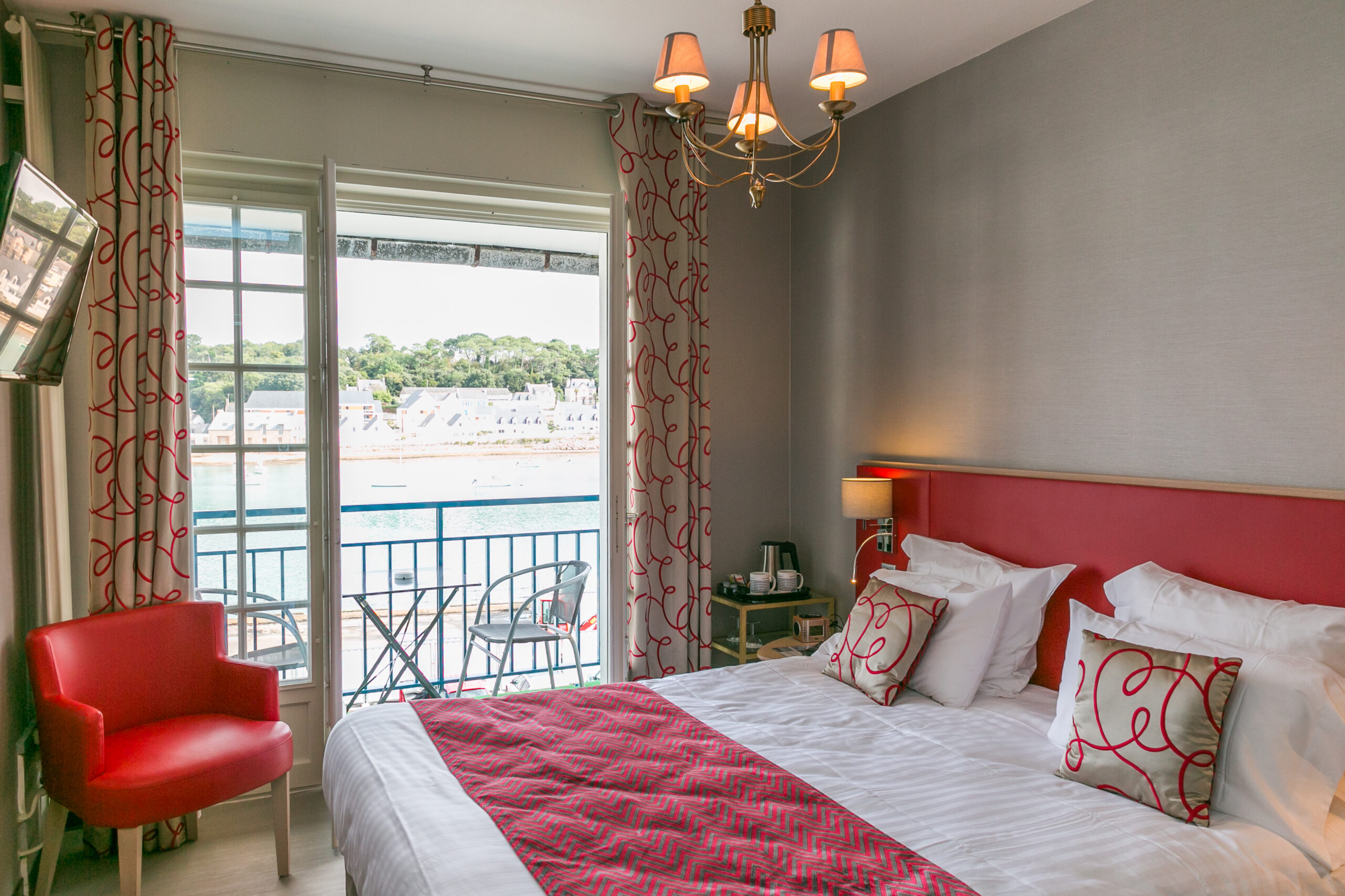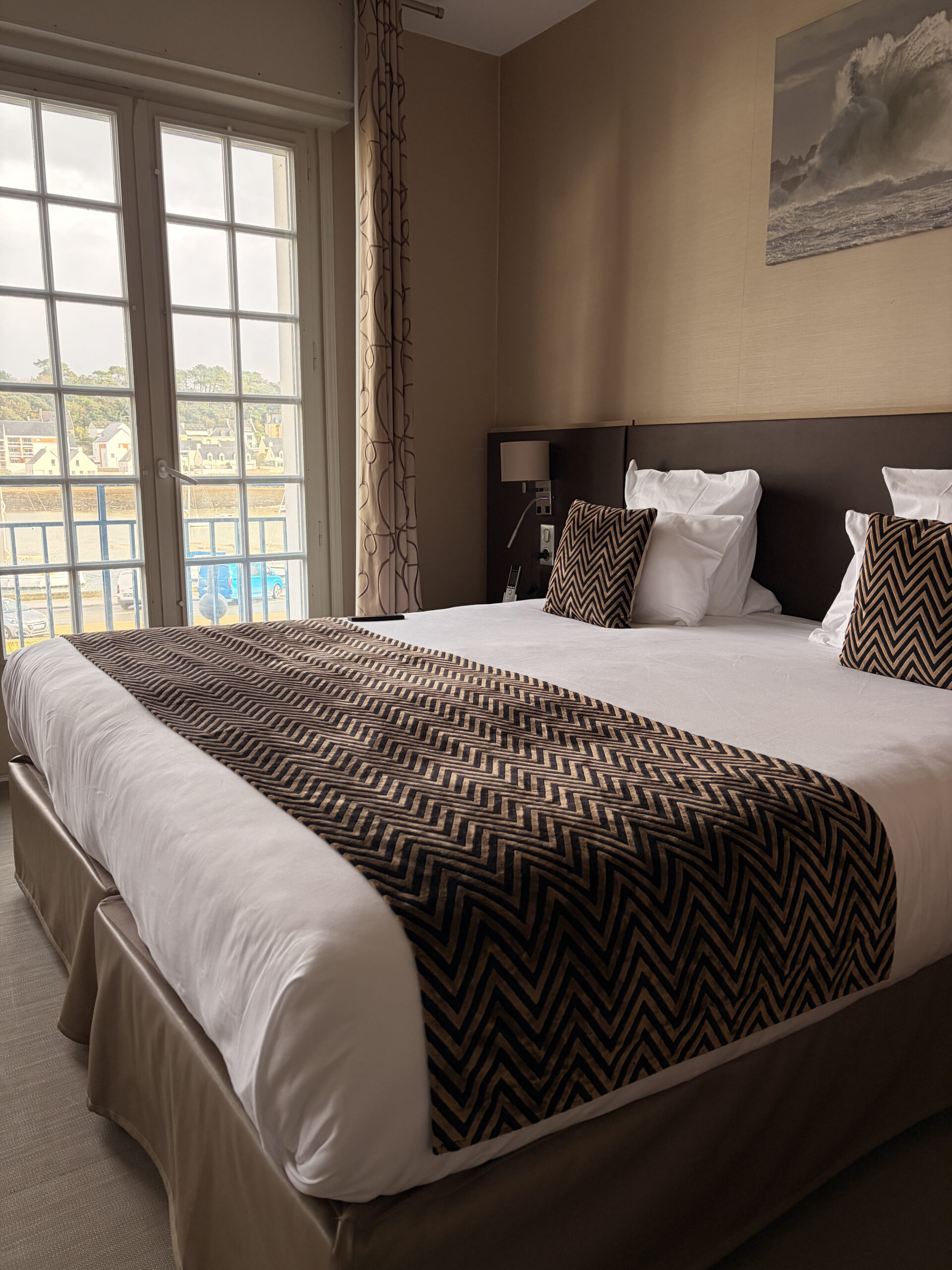 Pour une expérience inoubliable au bord de l’eau, découvrez les chambres Prestige en duplex. A l’étage, un salon panoramique baigné de lumière vous offre une vue exceptionnelle sur le port d’Audierne, un véritable tableau vivant à admirer à tout moment de la journée. En bas, la chambre à la décoration sobre et élégante, crée une ambiance apaisante. Un écrin de calme et de lumière pour toute la famille, face à l’océan.