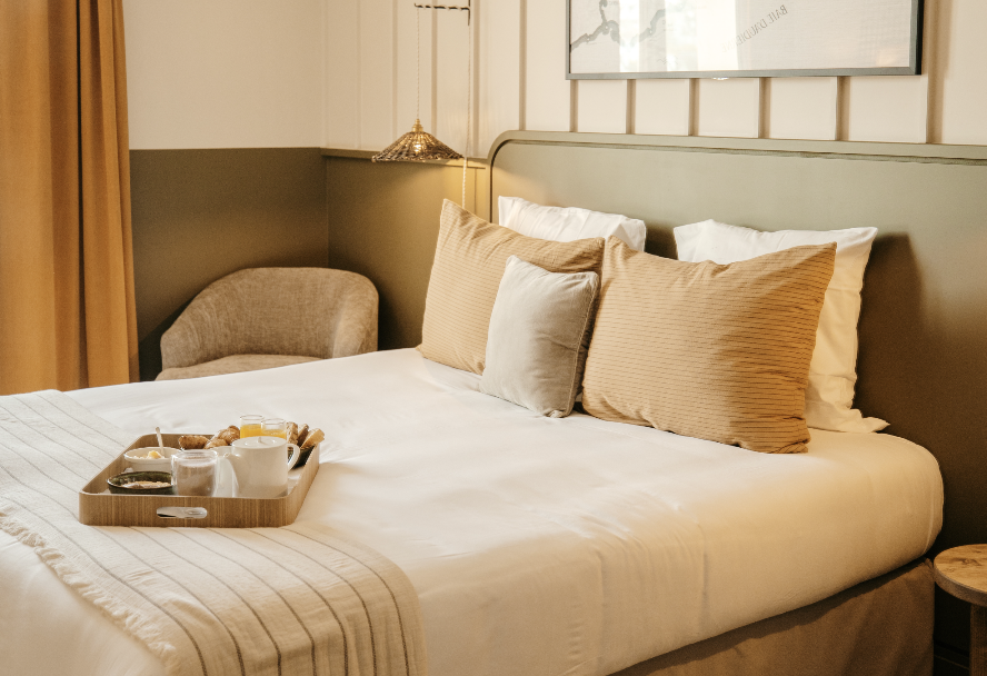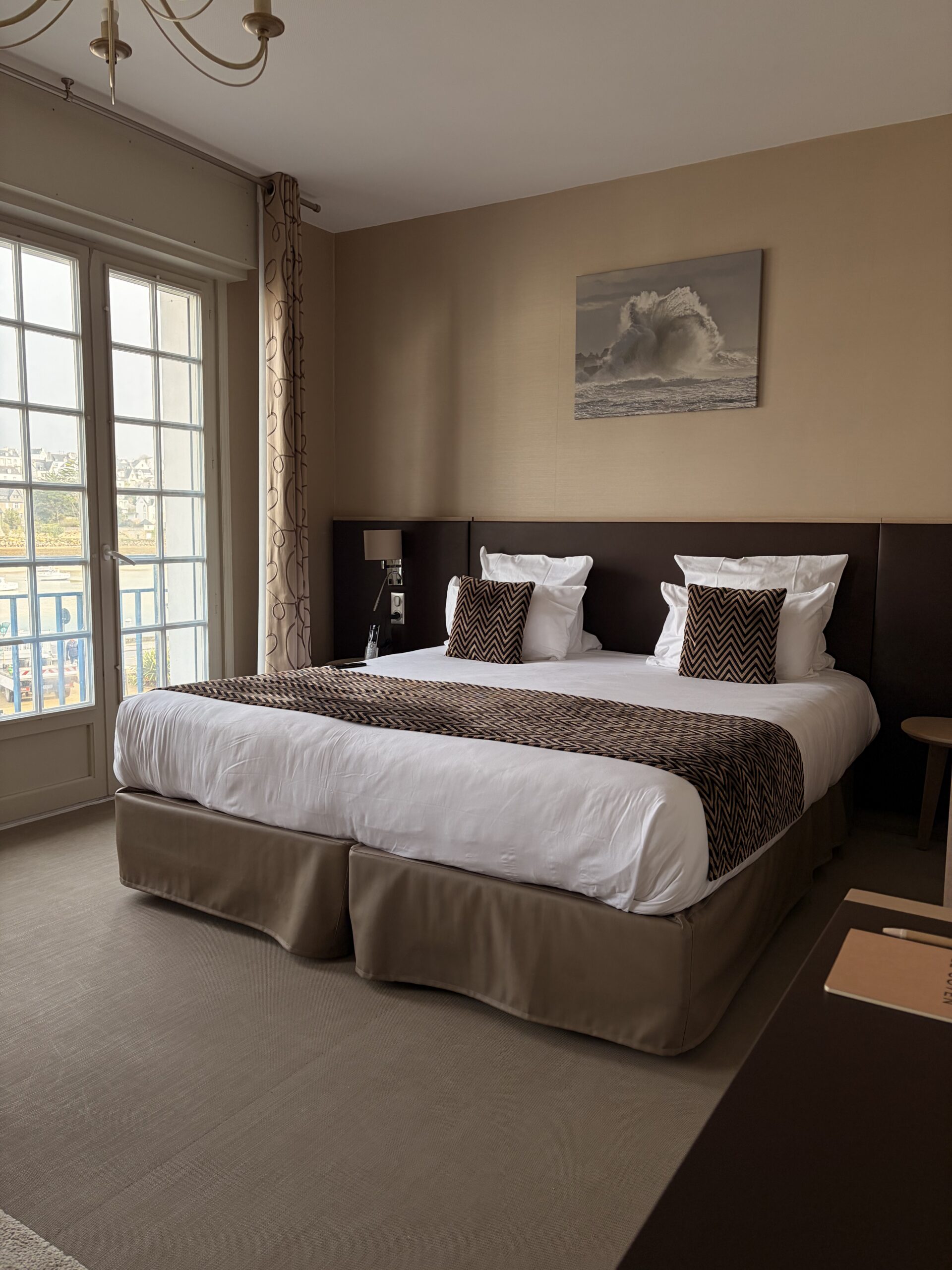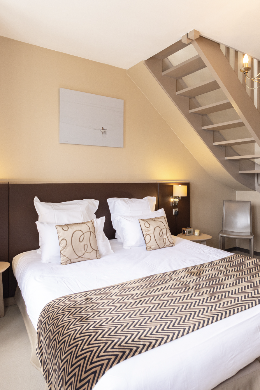Installées dans notre nouvelle extension, les Suites Mer offrent une vue unique sur le port d’Audierne. Dans une atmosphère chic et apaisante, teintes délicates, matières brutes et touches marines se conjuguent avec raffinement. Chaque suite est un cocon lumineux, à l’esthétique soignée, où le charme breton rencontre le confort contemporain pour une escapade inoubliable au bord de l’eau.